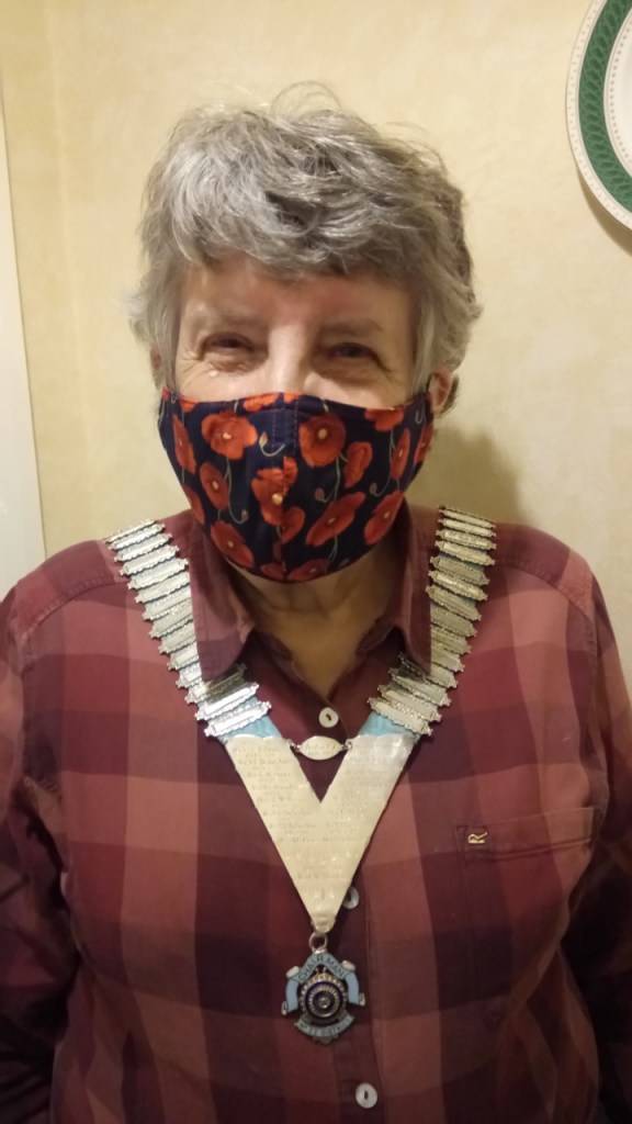 Our member PDC Yvonne chaired the meeting when the superb masks were displayed made by Sara Statham and the money raised was shared by three different charities.