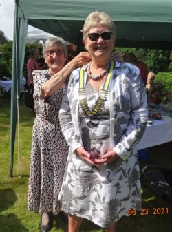 Past President Ilean Lumsdon hands over her chain of office to our new President Lynn Bowman