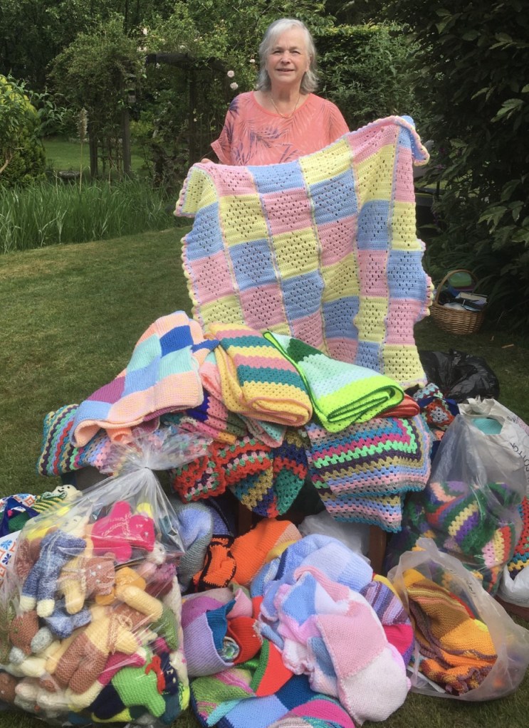 Lots of members, including Lorna Pye, Ann Pradhan, Margaret Wilson, Veronica Malkowski and Jennifer Brackenbury had knitted and crocheted a large number of lovely, colourful blankets and baby bears to be sent abroad for international charities.
