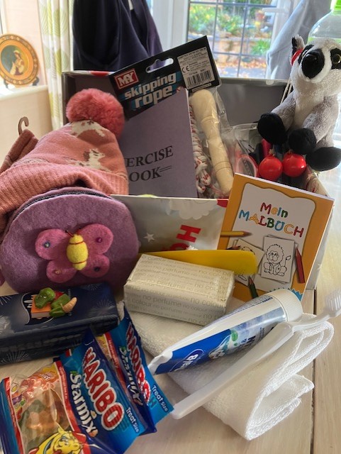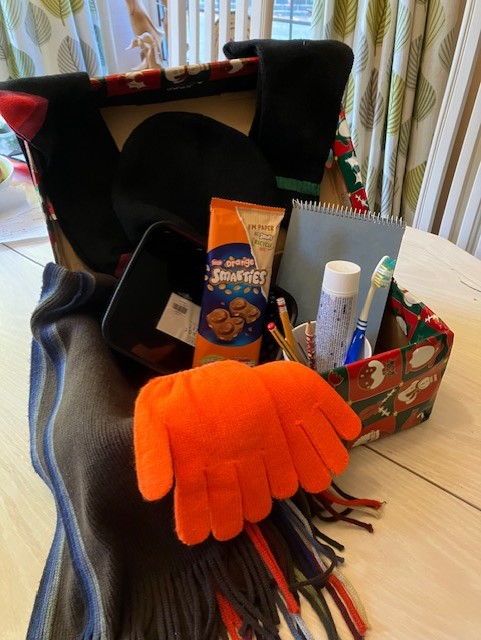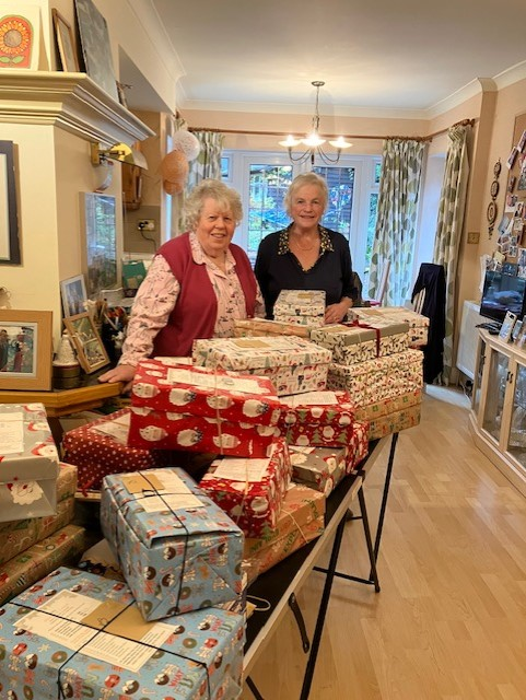 Rosemary and Kathy display some of the 30 shoeboxes that have been filled with presents by Inner Wheel members and friends. They will be sent to vulnerable children and adults overseas through the ‘Shoebox Appeal Charity’.
