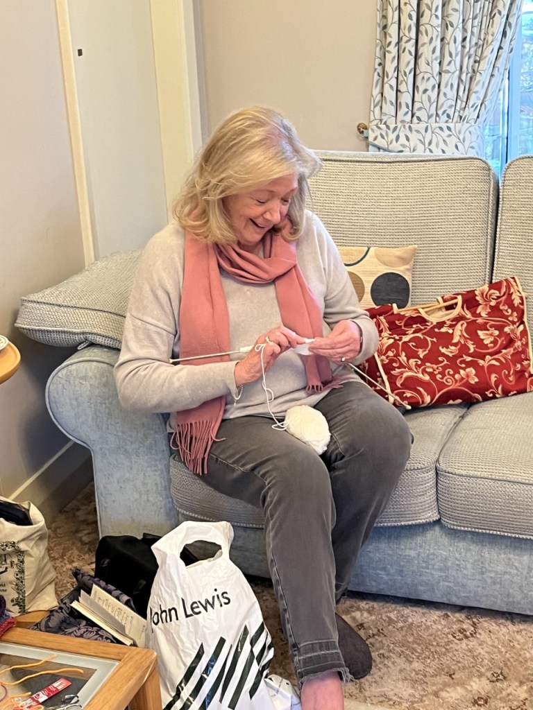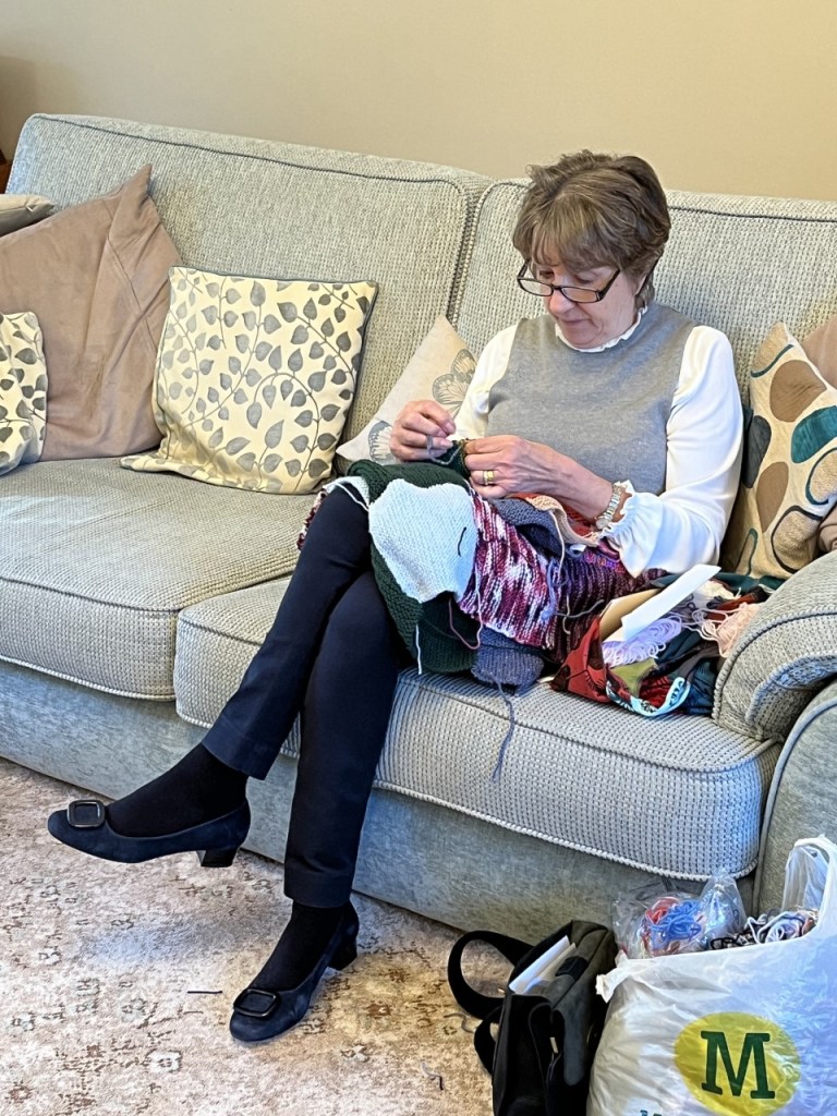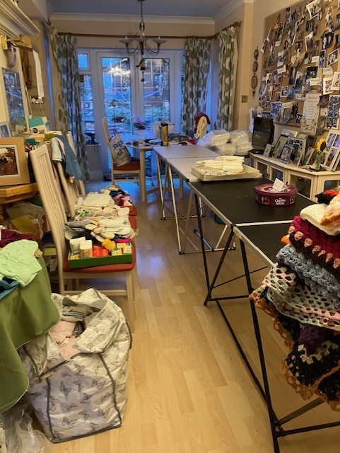 In the ‘Knitting Room’ the members coordinated as some knitted squares while others sewed them together to make the blankets which were to go into the baby bundles.