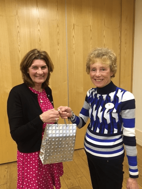 Margaret presenting Cath with a gift to thank her giving an interesting account of what happened when she offered to welcome a Ukrainian refugee into her home.