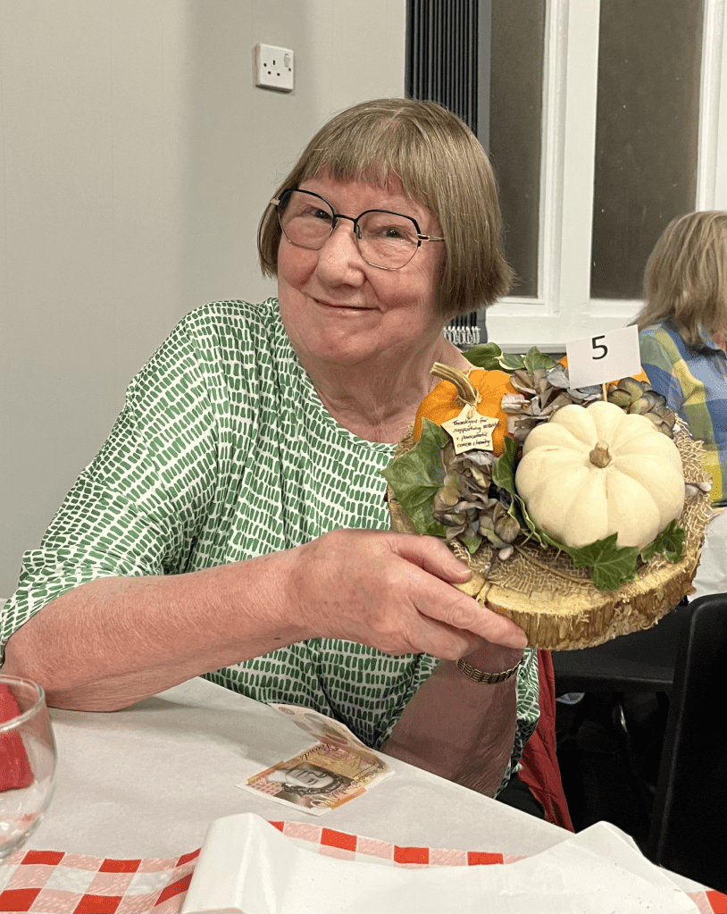 The lovely seasonal table decorations were made by Dain’s daughter, Sally and were offered for sale at the end of the evening