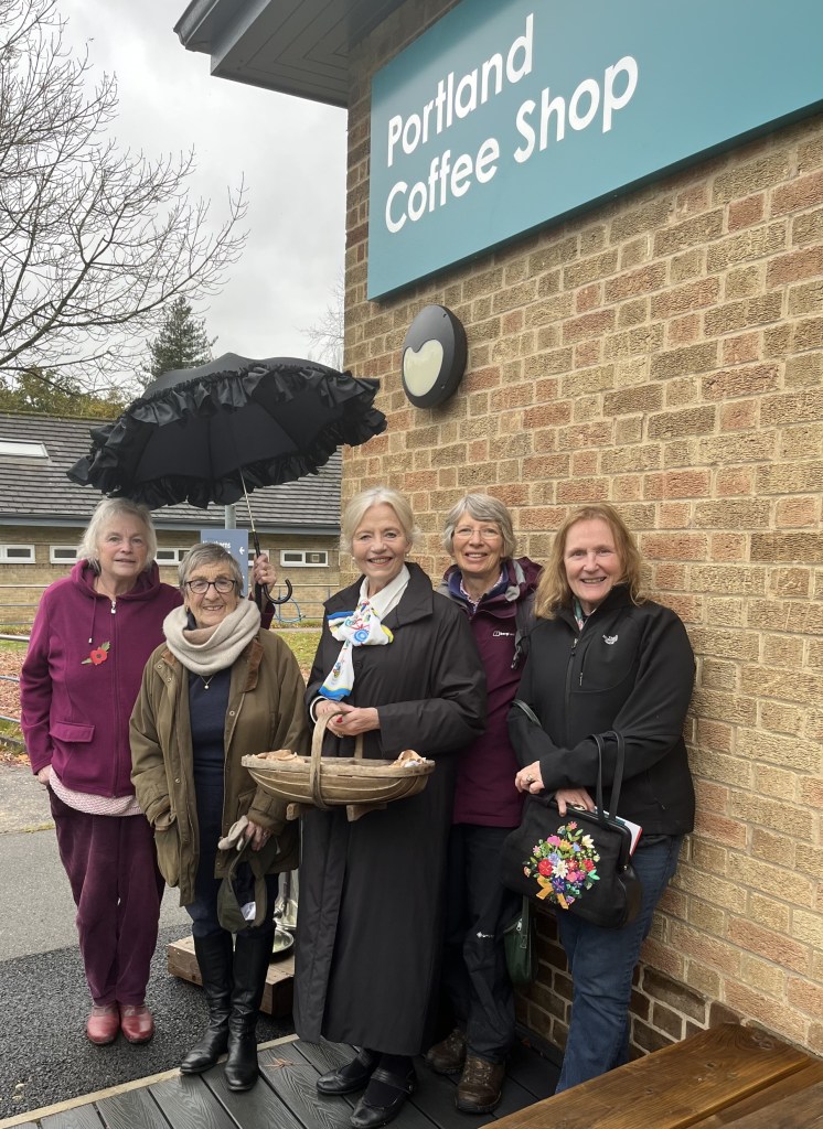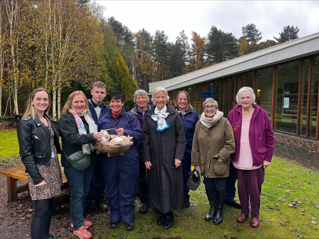 To continue with our 100 for 100 celebration of 100 years since the foundation of Inner Wheel, we have donated 100 spring bulbs to Portland College . A group of us gathered on a drizzly day and managed to dodge the raindrops for long enough to do the presentation. The Convention Committee have produced branded clothing for this year’s convention and Yvonne’s scarf arrived just in time promote this event too.