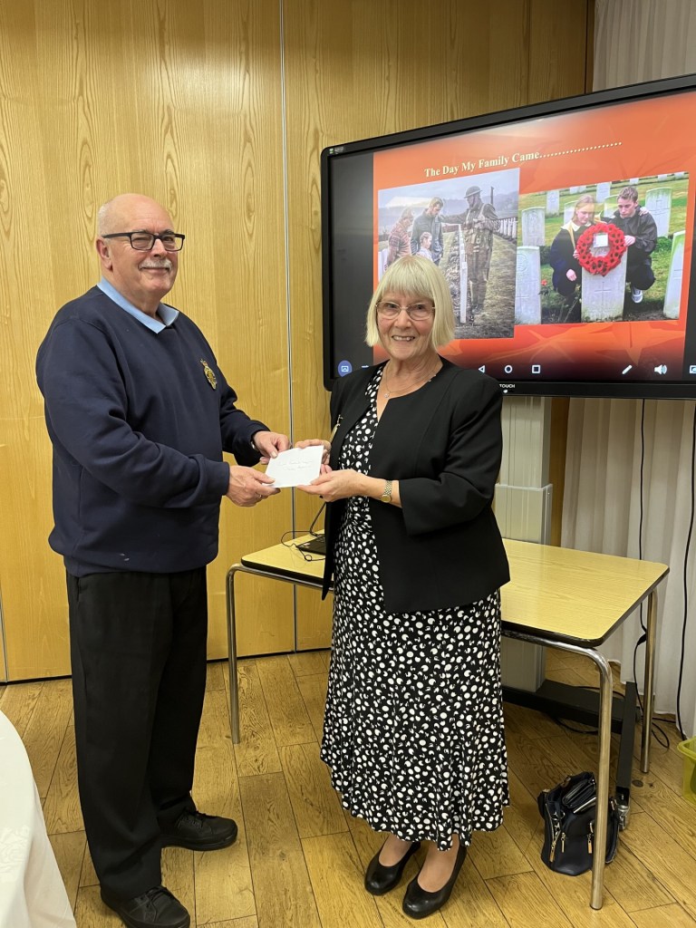 Grant and Jean Cullen were our guests for the evening and Grant gave us a most interesting presentation on the origins of The Royal British Legion and what they are doing to help and support veterans today. Grant was able to bank £120-59 in total from our club donation and members gifts in the collection boxes. It was very apt as our 100th anniversary is upon that we raised over £100. For the Royal British Legion.