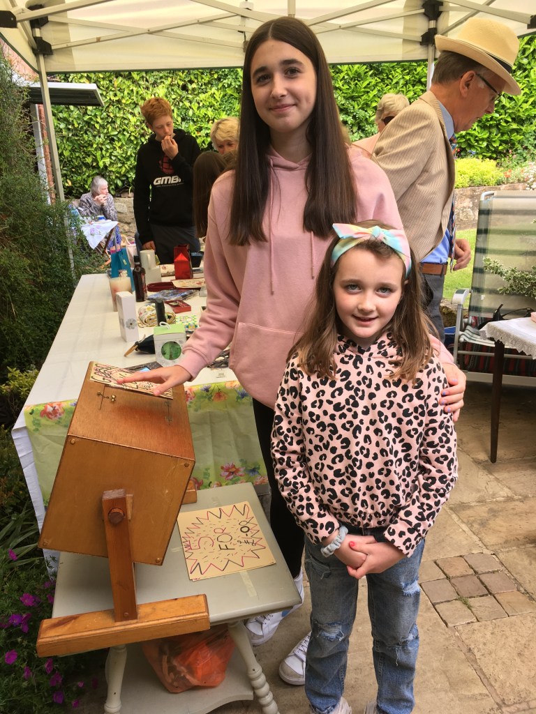 Anne & Lynn with Ann, the hardworking owner of the lovely garden.Elaine’s Grandchildren Lola and Eliza did a great job helping on the tombola stallName that teddy and win the bottleScrumptious home made cakesHow many beans in the bottle???having fun with the quiz